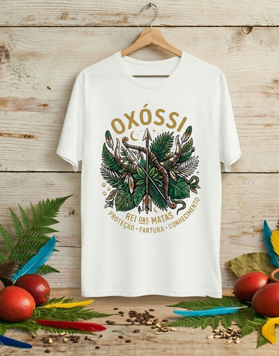 Okê Arô! Ewé Ó! Entre na mata sagrada com a nossa coleção exclusiva de Camisetas de Oxóssi e Ossaim. Desenvolvemos cada estampa para honrar a precisão do caçador e o mistério das folhas, unindo o fundamento sagrado ao vestuário de alto padrão. As nossas camisetas são produzidas exclusivamente em algodão 100% premium, garantindo um toque macio, frescor e a durabilidade necessária para quem busca a proteção do verde no seu dia a dia. Seja para homenagear Oxóssi Iboalama, Mutalambô, o segredo de Ossaim ou a sua falange de proteção, na Aruanda Co. você encontra o manto que veste a sua fé com a precisão e a qualidade que o seu Axé merece.
